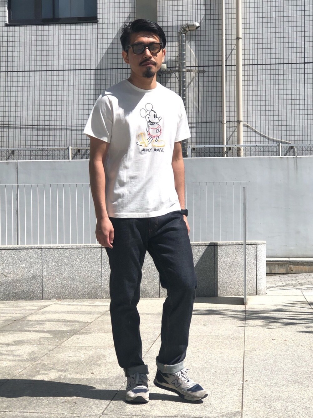 今日のコーデ ラインアートの刺繍が可愛いミッキーのTシャツをシンプルにデニムで合わせました。 男女問わずオススメの一枚です。