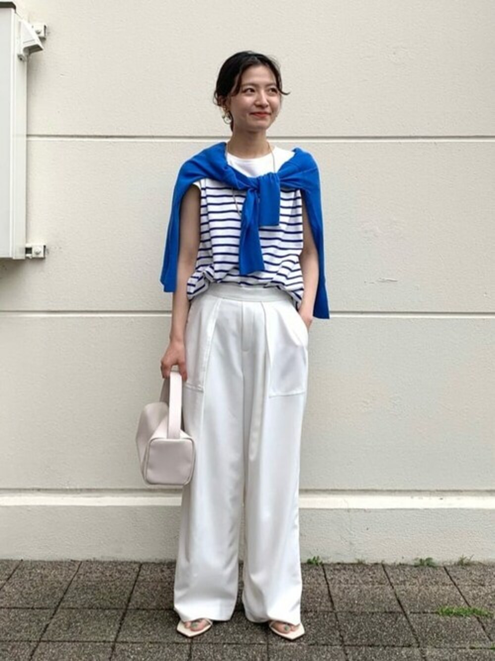 ◎パネルボーダーフレンチTシャツ 定番のボーダーTシャツです! ホワイト×ブルーで、爽やかなコーデにしました。 カジュアルなトップスとボトムでも トーンを合わせると、大人っぽい印象で着て頂けます!