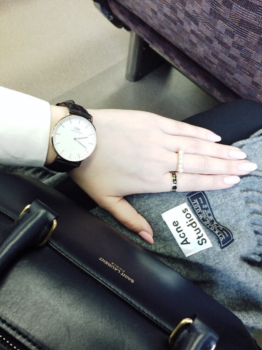 ring : mark by mark jacobs beams Watch : daniel Wellington stole : acne bag : saint laurant