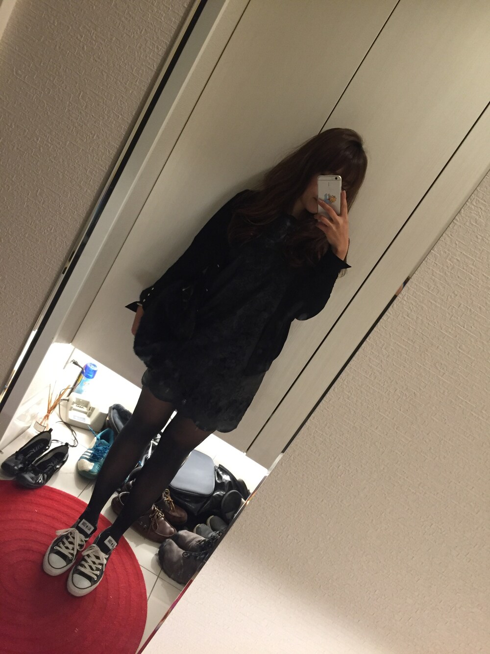 ブラックコーデ♥ ZARAのレザーのワンピース にコンバース👟