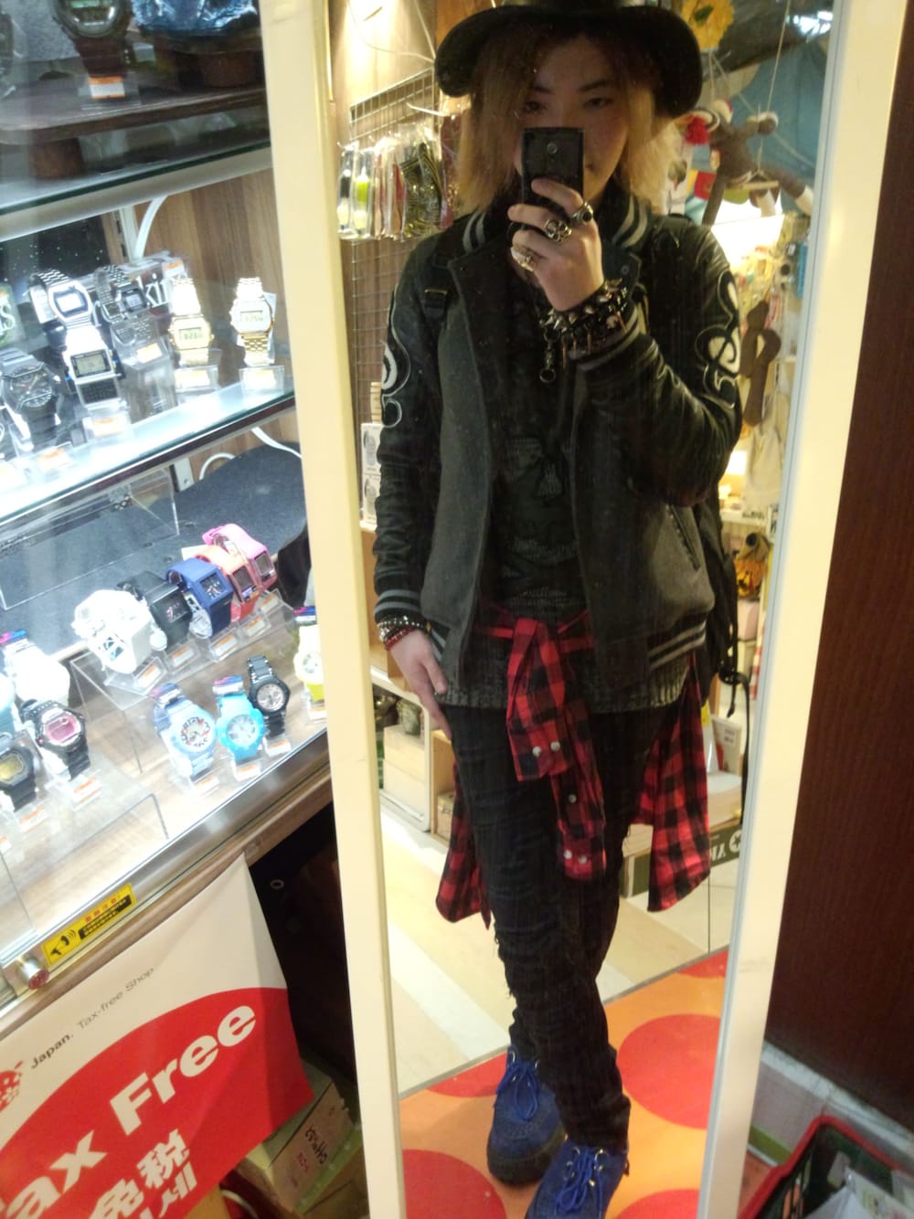 こんばんは♪ちょっと前のコーデをUp(*^▽^*)フェイクレザーの切り替えでト音記号が可愛らしくミュージシャン風のカッコいいスタジャンが主役のコーデ、お気に入りの赤ブロックチェックを腰巻き、クラッシュスキニーに青のラバーソール、ハットにアクセのジャラづけとミュージシャン風に(*^▽^*)女の子受けは保証しないので女の子にモテたいと考えている方、オレのコーデはマネしないように、お一人様になりますよ(笑)お給料がはいったら欲しいもの候補にいれてる洋服全部買います(笑)