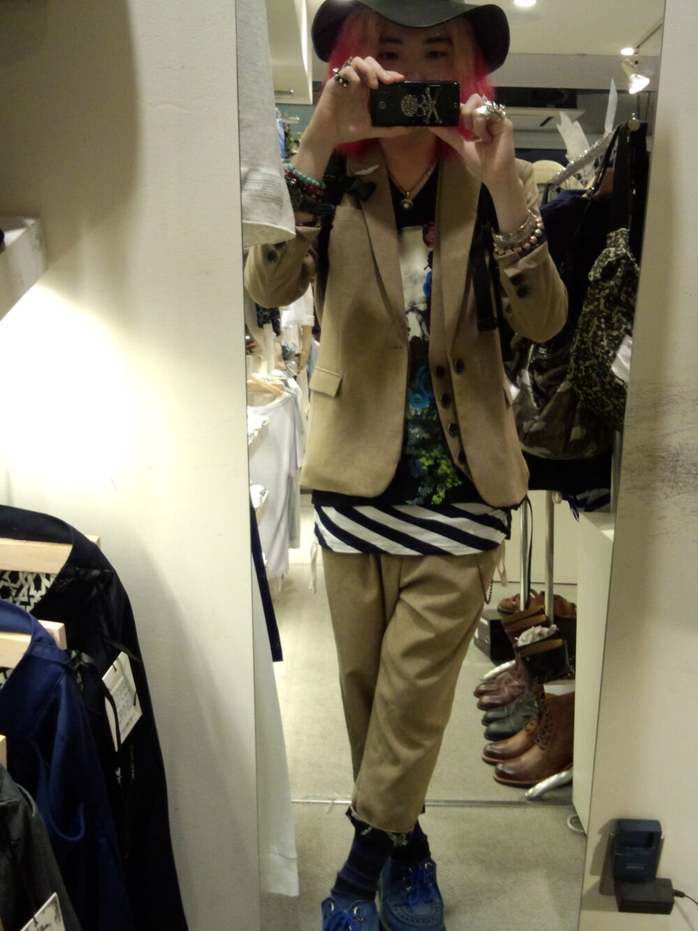 こんにちは♪最近買ったジャケットとベスト、クロップドパンツを使ったセットアップコーデです(*^▽^*)この時期での奇跡の4枚レイヤードが実現できる、レイヤードが大好きな自分にはたまらないのです(*^▽^*)ベージュで全体的に甘めなのでスカルと花柄のグラフィックが美しいTシャツで辛口要素もMix、ロングタンクのボーダーもアクセントに、クロップドパンツで軽快さもだしているのでカッチリしすぎないのです♪話は変わるのですが最近失恋してしまい今立ち直ろうと頑張ってます、どうか応援よろしくお願いします(笑)また素敵な出逢いがあるように頑張ります、ではでは長くなりましたがまたね~(^-^)