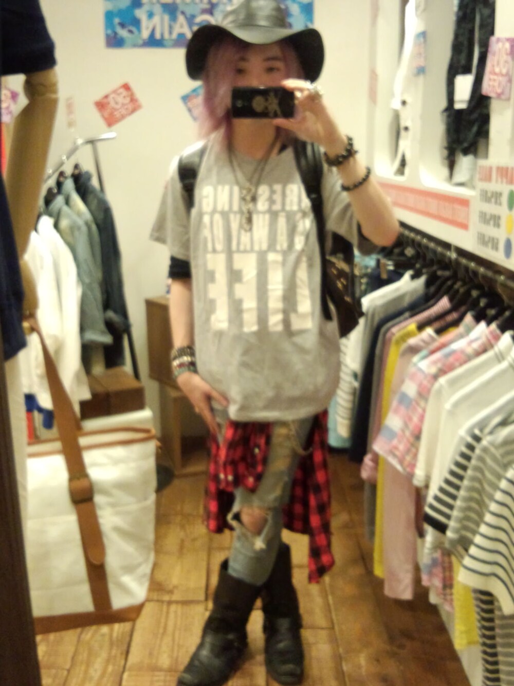 こんばんは♪午後いきなり雷がドカン!となって一時雨が降ってましたがもうやんで落ち着きましたね(^-^)今日のコーデはアメカジ×ロックを意識しました(*^▽^*)ブロックチェックのロングシャツはアレンジ力満点、アメカジ要素をMixしつつベースはクラッシュスキニーやエンジニアブーツ、ハット、小物使いでロックに(*^▽^*)グレーのメッセージプリントTシャツのゆったりとしたサイズ感も気にいってます(*^▽^*)あさってからいよいよ連休、ショッピングに食べ歩き、観光、カラオケ等々楽しみまくります(*^▽^*)その為にも明日気持ちよく仕事が終える事が出来るように頑張っていきたいです!オシャレキングの岩井さんが言ってました、自分が着たいものを着るのが一番だと、これからもオレはぶれずその考えを貫きます(*^▽^*)女の子受けなんてどうでもいいのさ(笑)