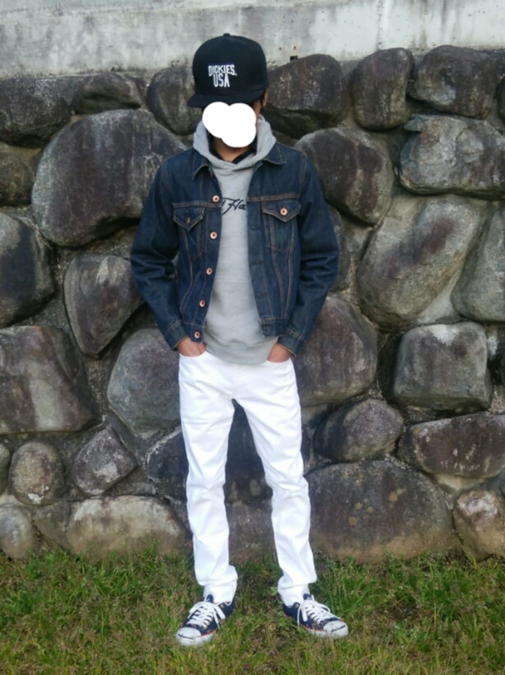 はじめまして!初投稿です! 分からないところもありますがよろしくお願いします!! 第1回目は、デニムジャケットに白パンツという鉄板コーデにキャップを合わせてみました! 一応デニムジャケットとスニーカー、キャップとシャツ(パーカーのインナー)の色を合わせたり、アイテムがカジュアルなので色使いを少し抑えて大人っぽくしてみたり、自分的には工夫したつもりです!! これからよろしくお願いします!(^_^ゞ