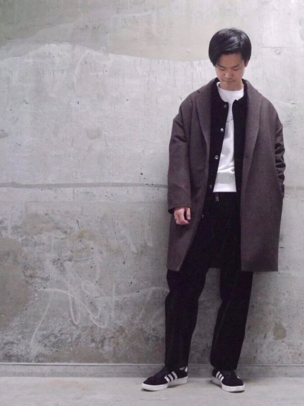 Chikuma Isogaiのチェスターコート「デザインBIGチェスターコート」を使ったコーディネート