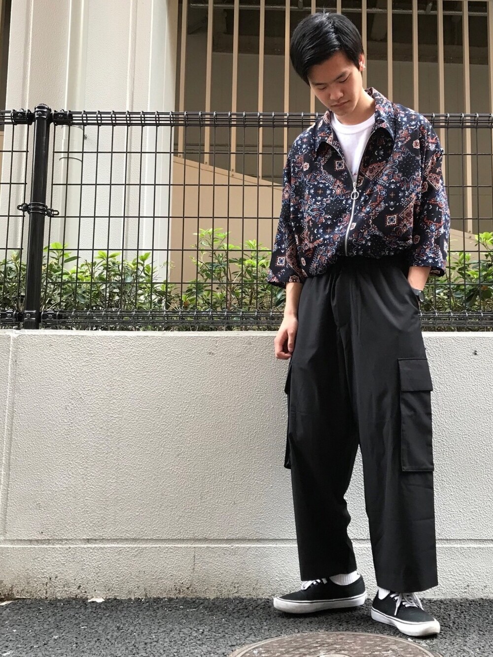 柄シャツ×カーゴパンのスタイリングです! モードな雰囲気にストリート感を加えてみました🙆♂️