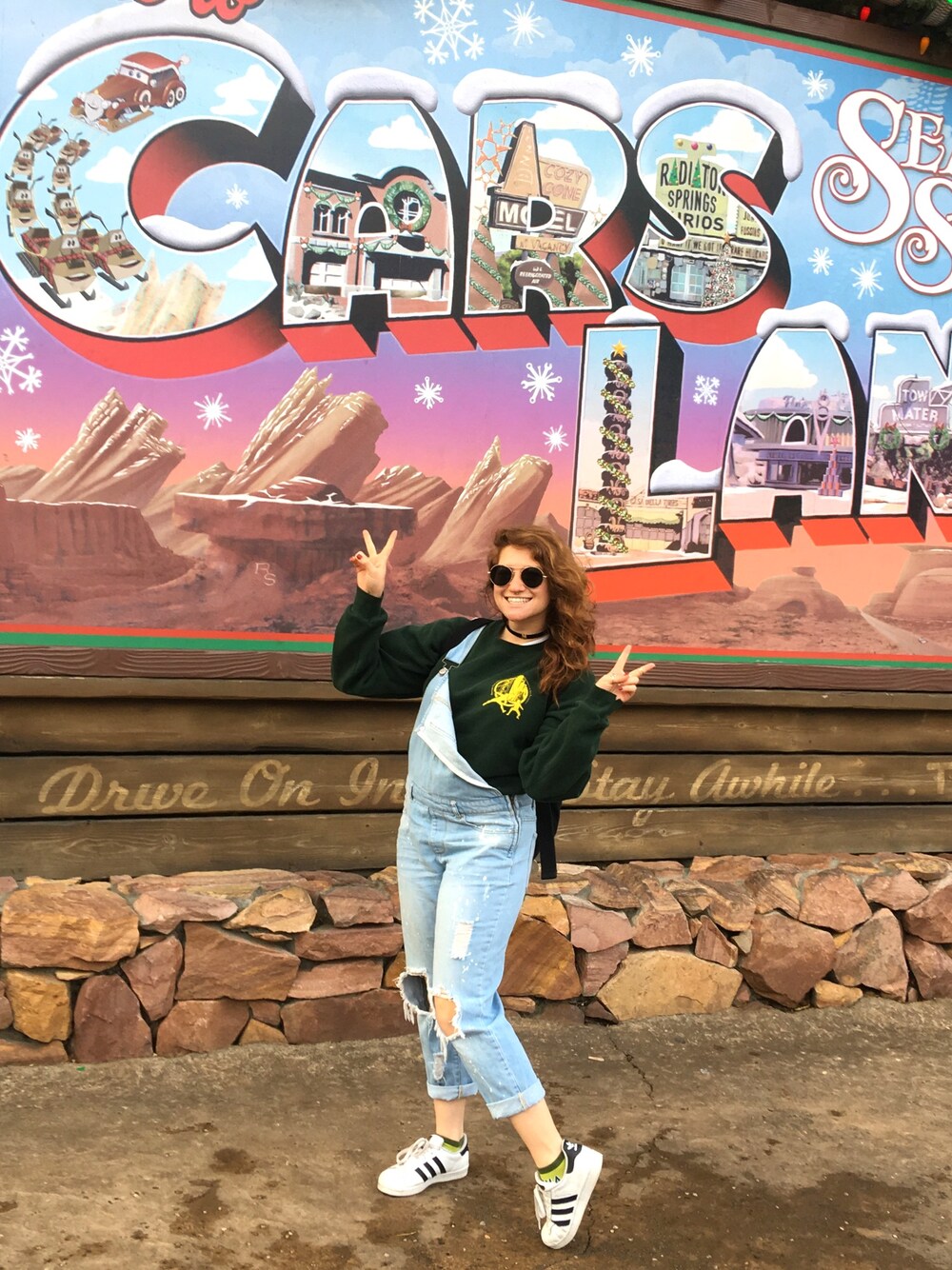 This cute leisurely outfit is perfect for rides and fun pics with characters. That day was especially chilly so the sweater really helped