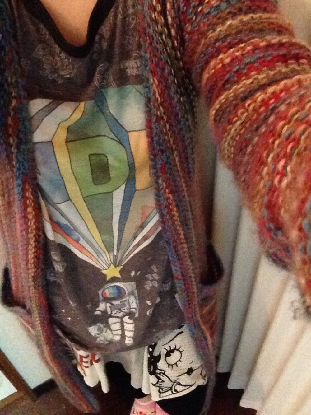 これからごはんいきます♪ カーディガン、Tシャツ/アメ村の古着屋さん スカートはベティちゃん♥︎