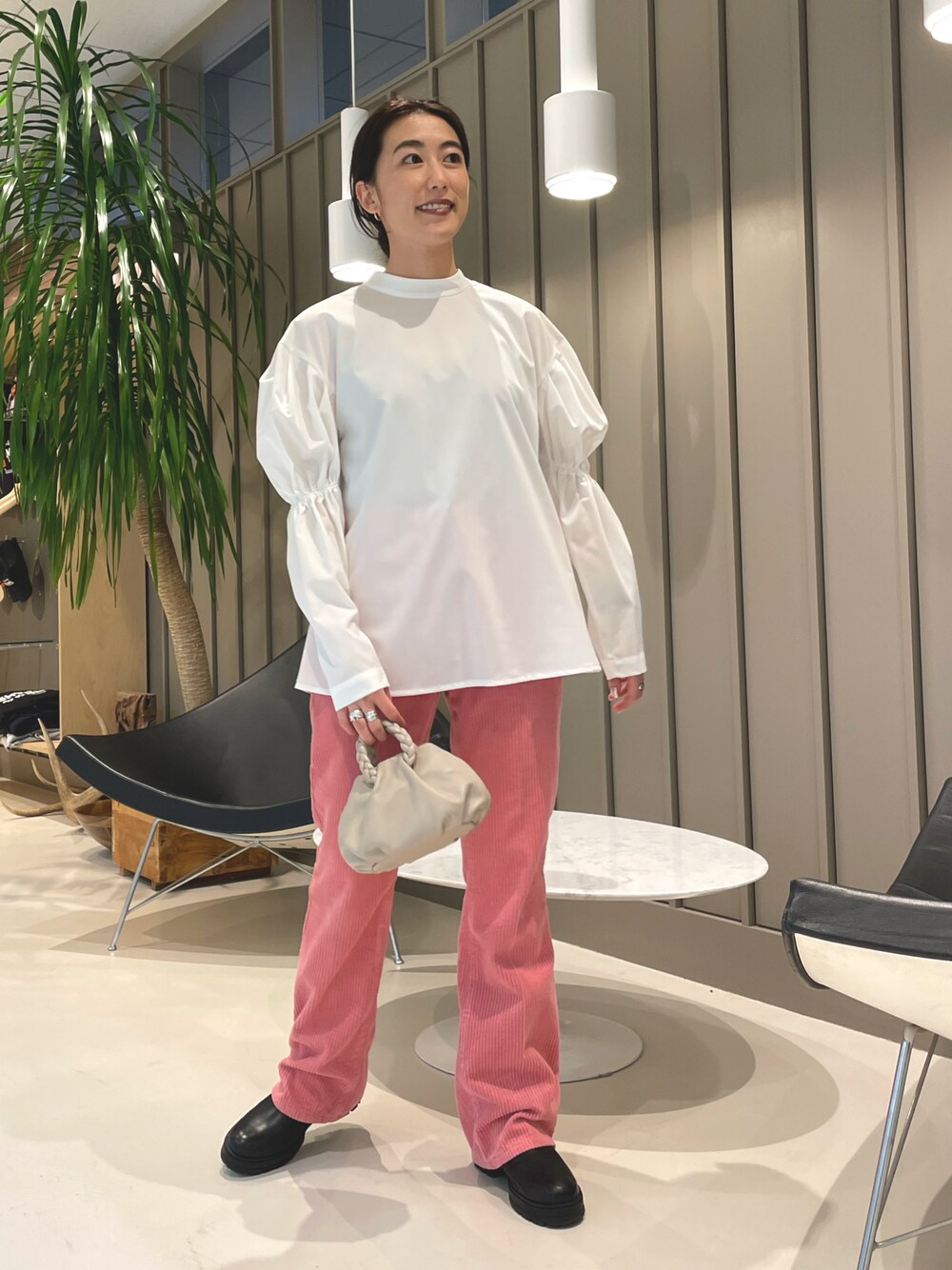 ピンクコーデュロイにびびっと😬💗 トップスのブラウスは オフィスカジュアルにも🙆🏻♀️🤔💗💗