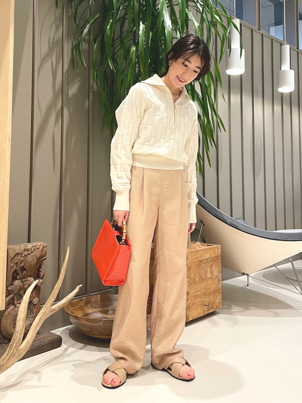 トレンドのハーフジップの新作トップス! ワントーンで合わせて、バッグで差し色❤️‍🔥