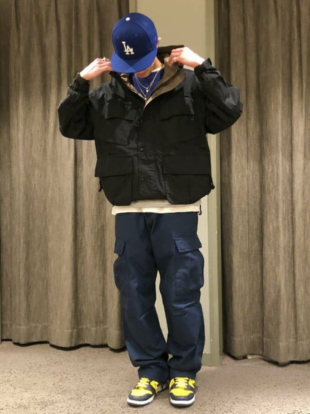 アウターをメインにスタイリングしてみました。ドローコードが付いているのでシルエットを気分で変えたり出来ます!ルーズシルエットなのでSサイズで着用してみました。