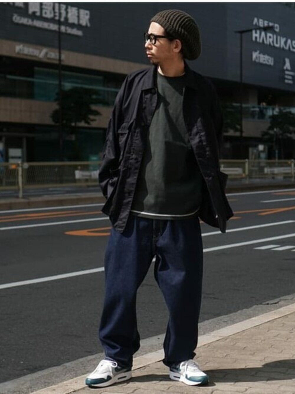 90年代な雰囲気漂うコーディネートを素材や細部のバランスで現代風にアップデートしたコーディネート。カットソーとパンツのホワイトステッチが暗いトーンの合わせを軽くさせてくれます♪