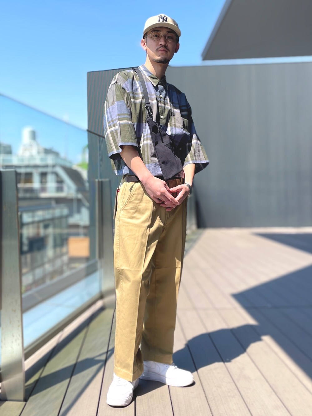 落ち着いた色味とシルエット、タックインでダッドスタイル。年齢に見合うよう、キャップとシューズでバランスとりました。<Levis>のこのパンツかなりお気に入りです。