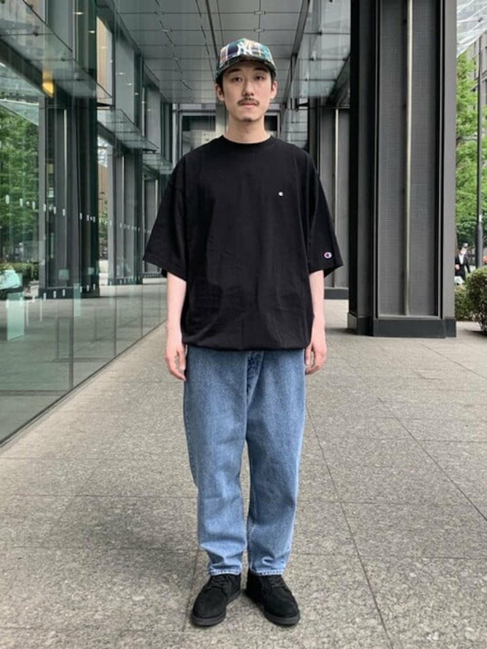【Champion】の別注ルーズフィットTシャツは裾のドローコードでシルエットのアレンジが可能に!夏にタックインは蒸れて暑い!そんな方にオススメ。デニムはただ太いだけではなく、裾にかけてテーパードされ程よいボリュームです。ウエストでしっかり履いて頂いてもOK!腰履きもOK!どんなスタイルにも合わせやすいです!!足元と帽子は今季オススメ別注!