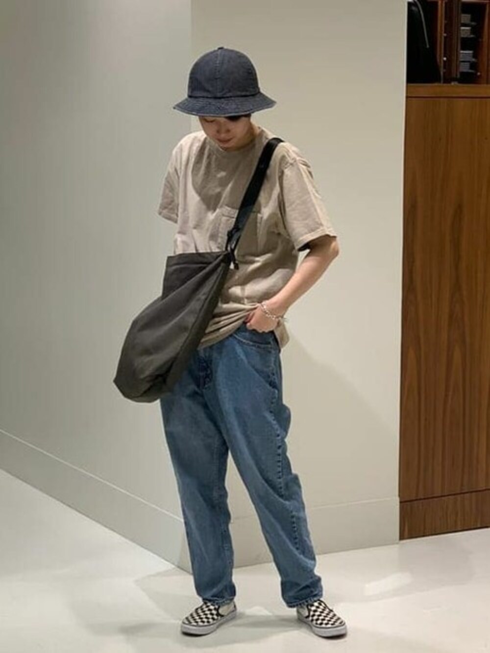 Tシャツ×デニムでシンプルな組み合わせですが、小物を使って寂しくないコーディネートにしました◎ <NOTIVE/CANTERA × BEAMS>のショルダーバッグはカラビナで長さ調節ができる都会的なデザイン!容量もポケットもたくさんあって気に入ってます!!!
