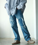 トップス、パンツにダメージアイテムを着用しました。絶妙なダメージならクセが強すぎなく馴染んでくれます。ダメージデザインですが、程よい太さのパンツは使い勝手がいいです。