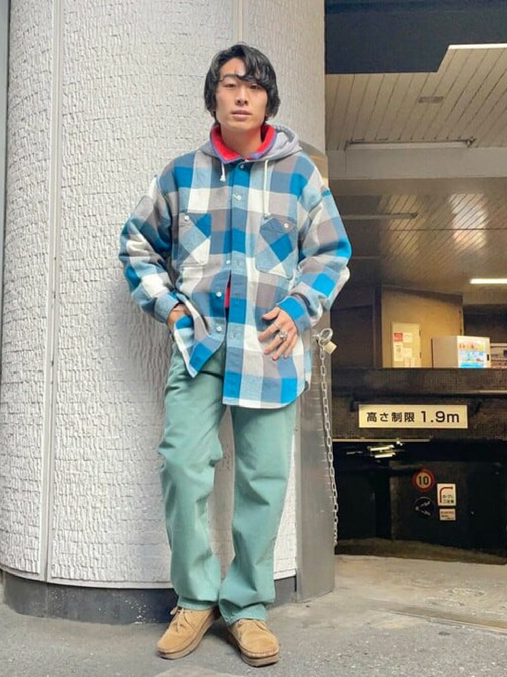 【カラーデニム】今年は良さそうですね。帽子に頼れない僕にはアクセントになってくれるボトムスが心強い。洗いのかかった風合いがスエードのシューズと合います。