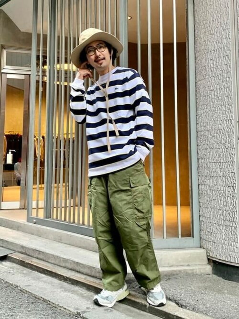 【ハットで違和感】ボーダーTシャツにミリタリーパンツというシンプルなコーディネートですが、特徴的なハットで自分らしさを出してみました! BEAMS ストリート 梅田 / BAKU
