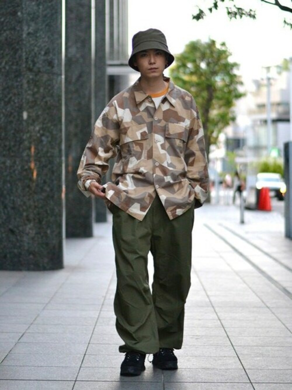 カモフラージュ柄のシャツジャケットを中心に、ミリタリーテイストのスタイリングを組みました。 気温が中々安定しないこの時期は、軽く羽織れる薄手のブルゾンがあると便利です! 168cmで、パンツはM、その他のアイテムはSサイズを着用しております。特にインナーのベースボールTシャツはかなりのオーバーサイズですのでサイズを普段より下げていただいても大丈夫です! BEAMS 恵比寿 / ケント