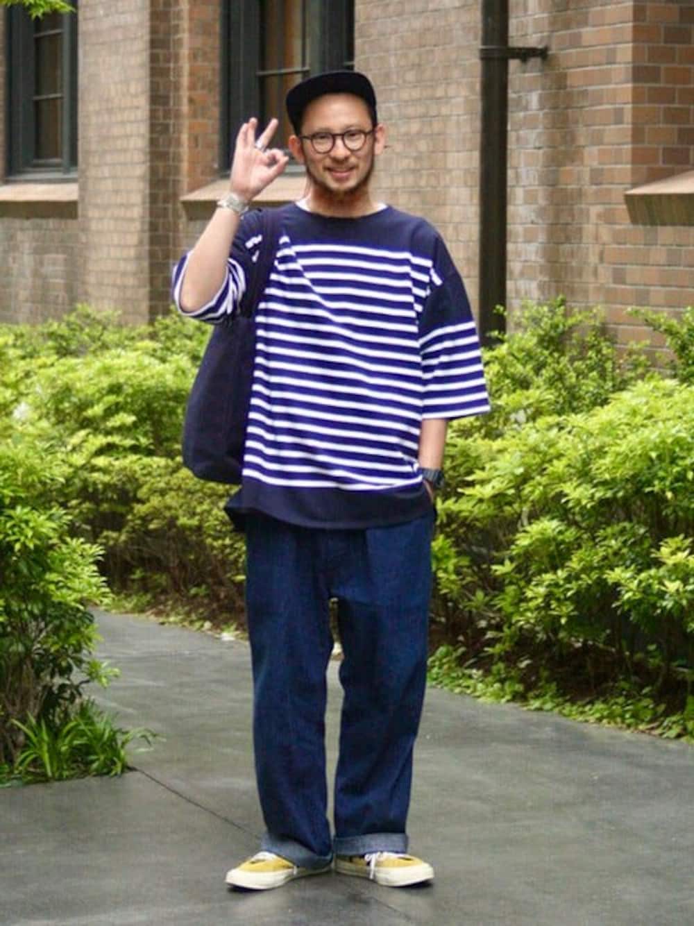 BEAMS(BEAMS MEN)のTシャツ/カットソー「ORCIVAL × BEAMS / 別注 Naval Border T-shirt」を使ったコーディネート