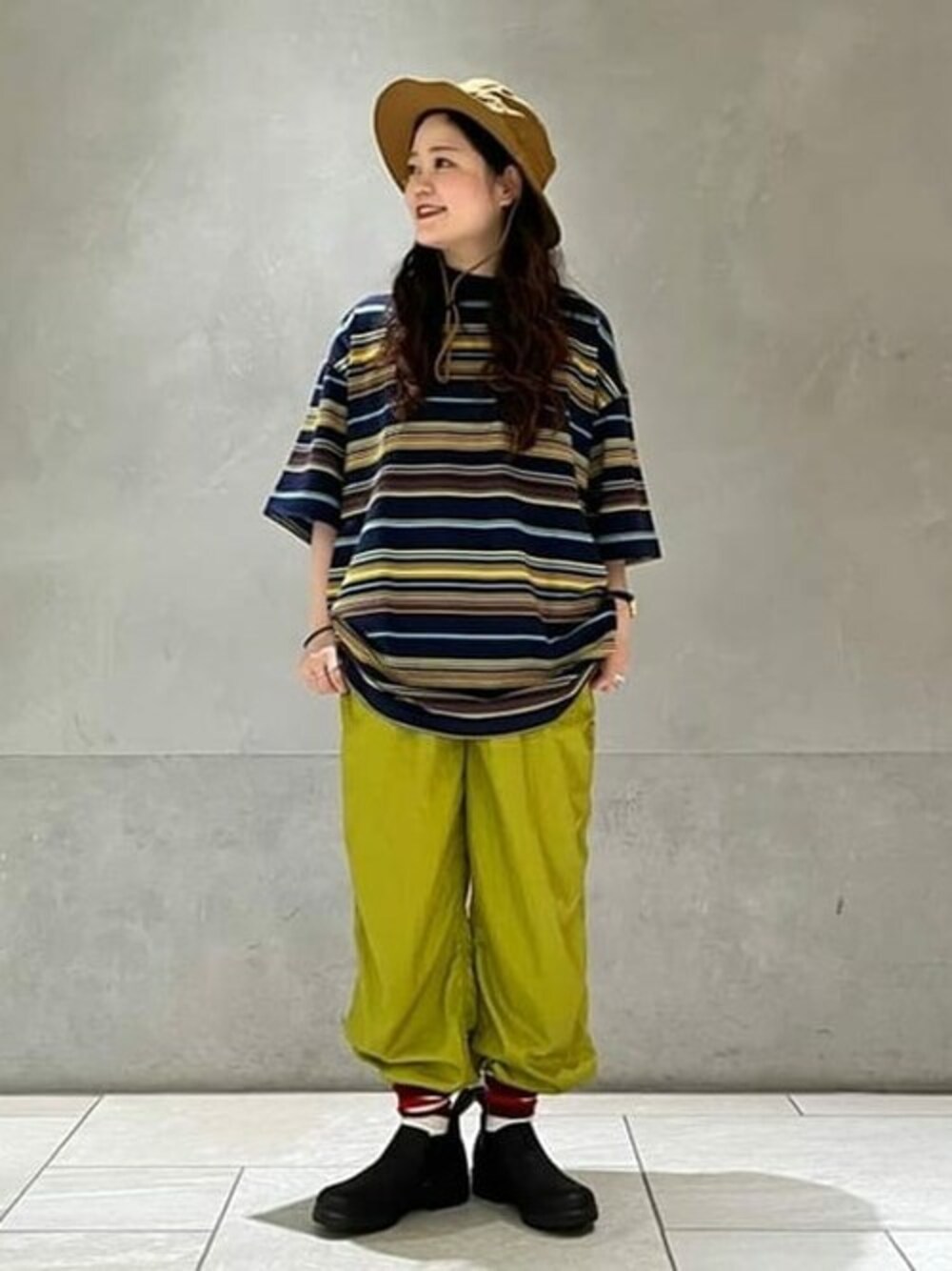 カスタニおすすめメンズ服】配色が可愛いマルチボーダーTシャツ、メンズでお取り扱いのあるものになります!私はLサイズ着用で大きめに!ネイビーベースにイエローの配色が可愛くて個人的に大好きです♪ BEAMS 立川 / カスタニ モモノ