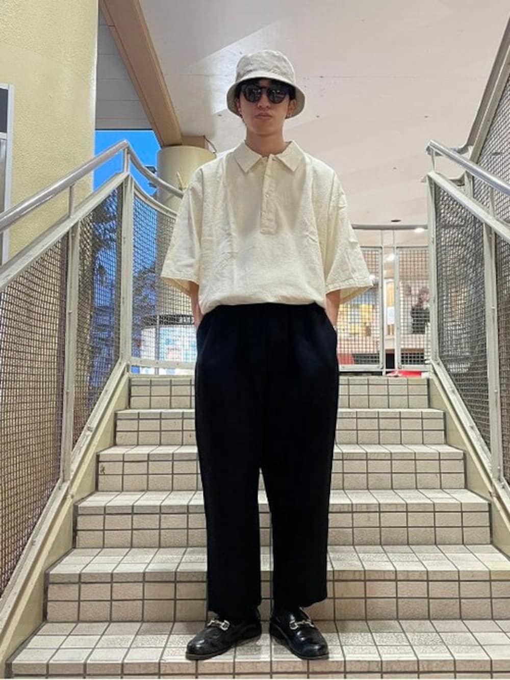 全身リネン素材の服でスタイリングしました!少しミリタリー感がありながら都会的なスタイル。カジュアルになりすぎないように靴はローファーでしめました!シャツをタックインするとスタイルアップするのでおすすめです◎ BEAMS 新潟 / 押見 優樹