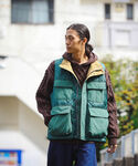 グリーンを中心にコーディネート。一枚羽織るだけで旬な見た目に見せてくれるキルティングベストは今季イチオシのアイテムです。裏地とのコントラスもアウトドア臭漂わせるナイスな配色です!合わせたパンツは、渋めなブラウンが効いたウール地のスラックス。ベストとの相性も良く、いなたく見せない上品な風合いがお気に入りです◎ BEAMS 銀座 / 中川 裕希