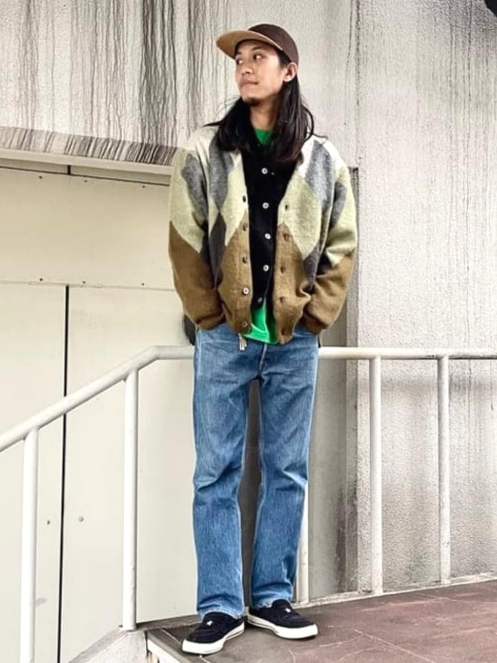 BEAMS(BEAMS MEN)のカーディガン/ボレロ「BEAMS / アーガイル シャギー カーディガン」を使ったコーディネート