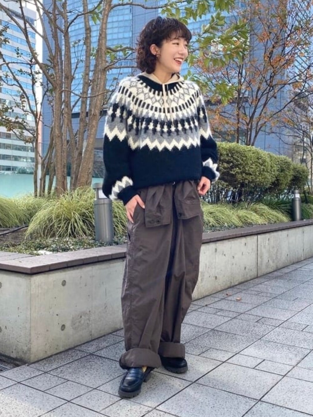 【可愛らしすぎない、ノルディック!】 可愛い印象のノルディックを、メンズのアイテムで取り入れる事で、クールな印象に!!◎ブラックを選んだのもポイントです♡ BEAMS NEWS / 鈴木 礼美