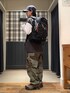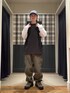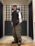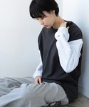 〈Champion × BEAMS〉別注2トーン ロングスリーブ Tシャツを主役にスタイリング。 別注ならではのサイズ感で、かなりオーバーサイズです。 〈BEAMS〉ビッグ 6ポケット カーゴパンツはいつもよりサイズを上げてMサイズで着用しバランスを意識しました。 BEAMS / 鈴木 健斗