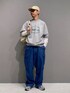 デニムにスウェットでシンプルなアメカジスタイリング。