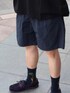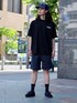 ナイロンショーツでスポーティーにスタイリングしました。ポップなバックプリントがナイスなTシャツも最高です! BEAMS / 谷口 勇治