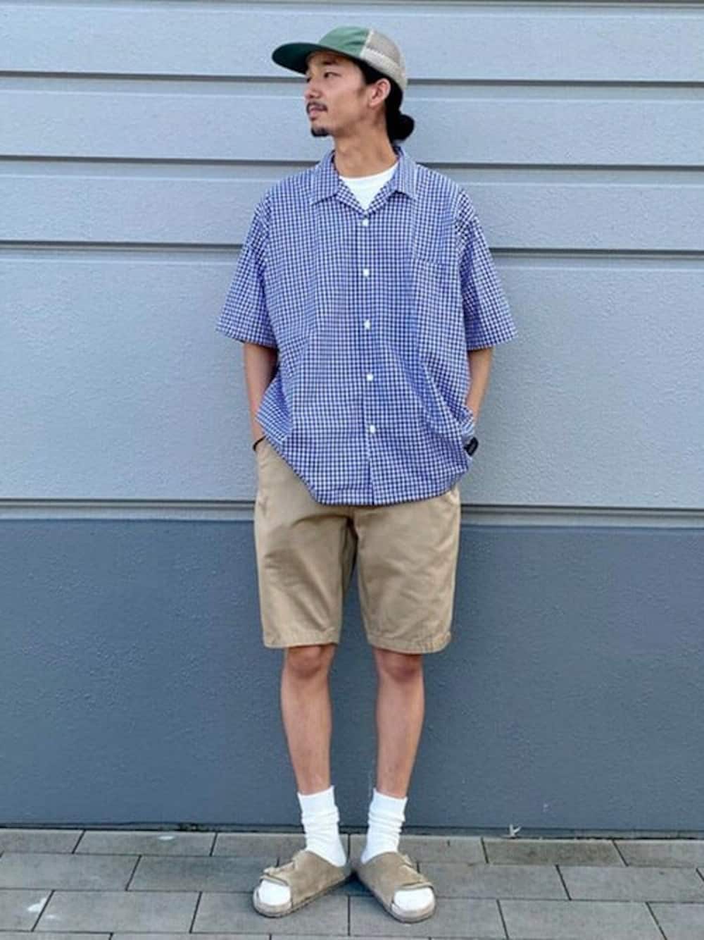 BEAMS(BEAMS MEN)のシャツ/ブラウス「BEAMS / ルーズフィット ギンガムチェック オープンカラー シャツ」を使ったコーディネート