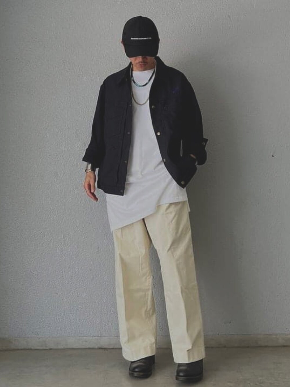 【168cm・細身・着用:ジャケットL/ロングTシャツS/パンツS】 オーセンティックでクラシック。 丈感と色の組み合わせでモダンに。 ロングTはメンズでは意外と珍しいですね。 メリハリあるスタイリングになります。 ビームス メン 渋谷 / Hasegawa Kazutaka
