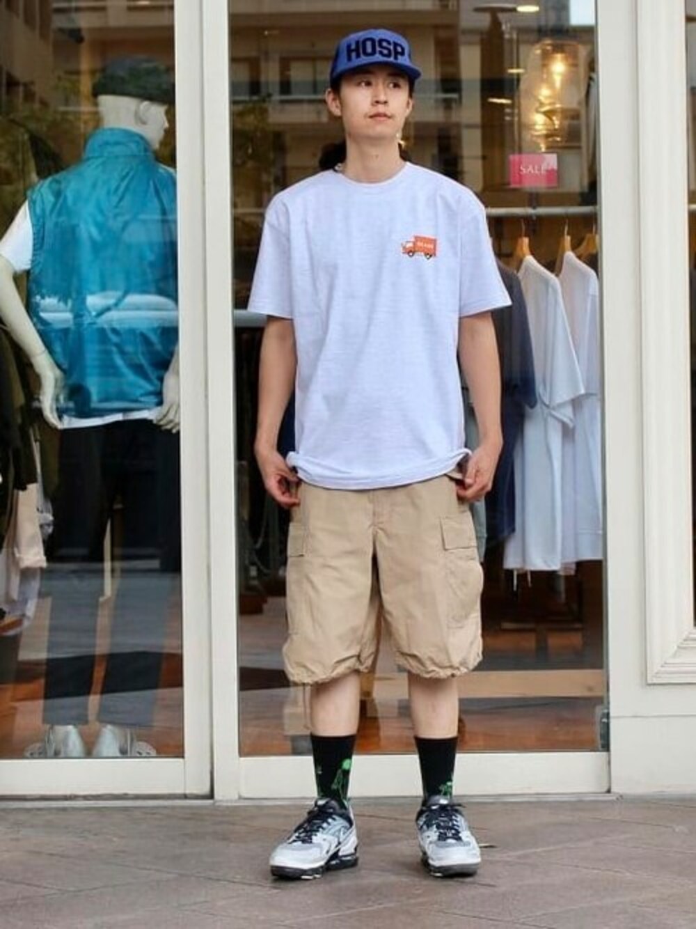ビームスレペゼンなTシャツをメインにスタイリングしました。この一枚で街を歩けば宣伝効果が凄そうです! BEAMS / 谷口 勇治