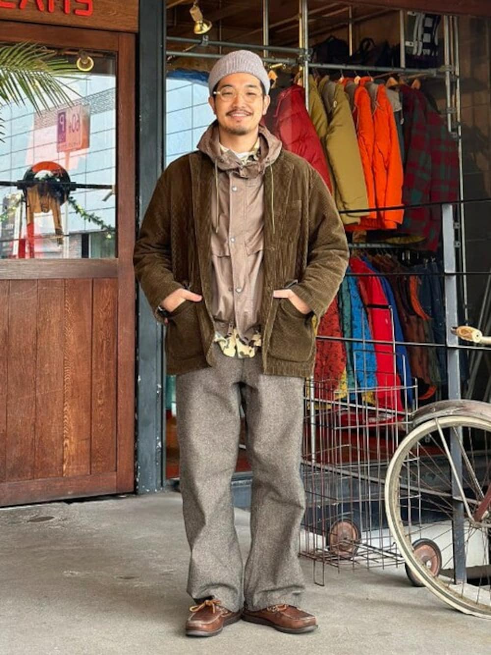 <BEAMS PLUS>の新作、クルーザージャケットを着用。今時期でもレイヤリング次第では着用ができる"すゝめ"な1着です。短丈という事もあり、インナーにはダックハンターカモシャツをチラつかせております。クルーザージャケットの上からオリーブコーデュロイ、そしてペインターパンツと今着たいアイテムを総動員しました。バランスよくアウトドアムードを演出、レイヤリングが楽しい季節かと!!! BEAMS PLUS / 清野拳