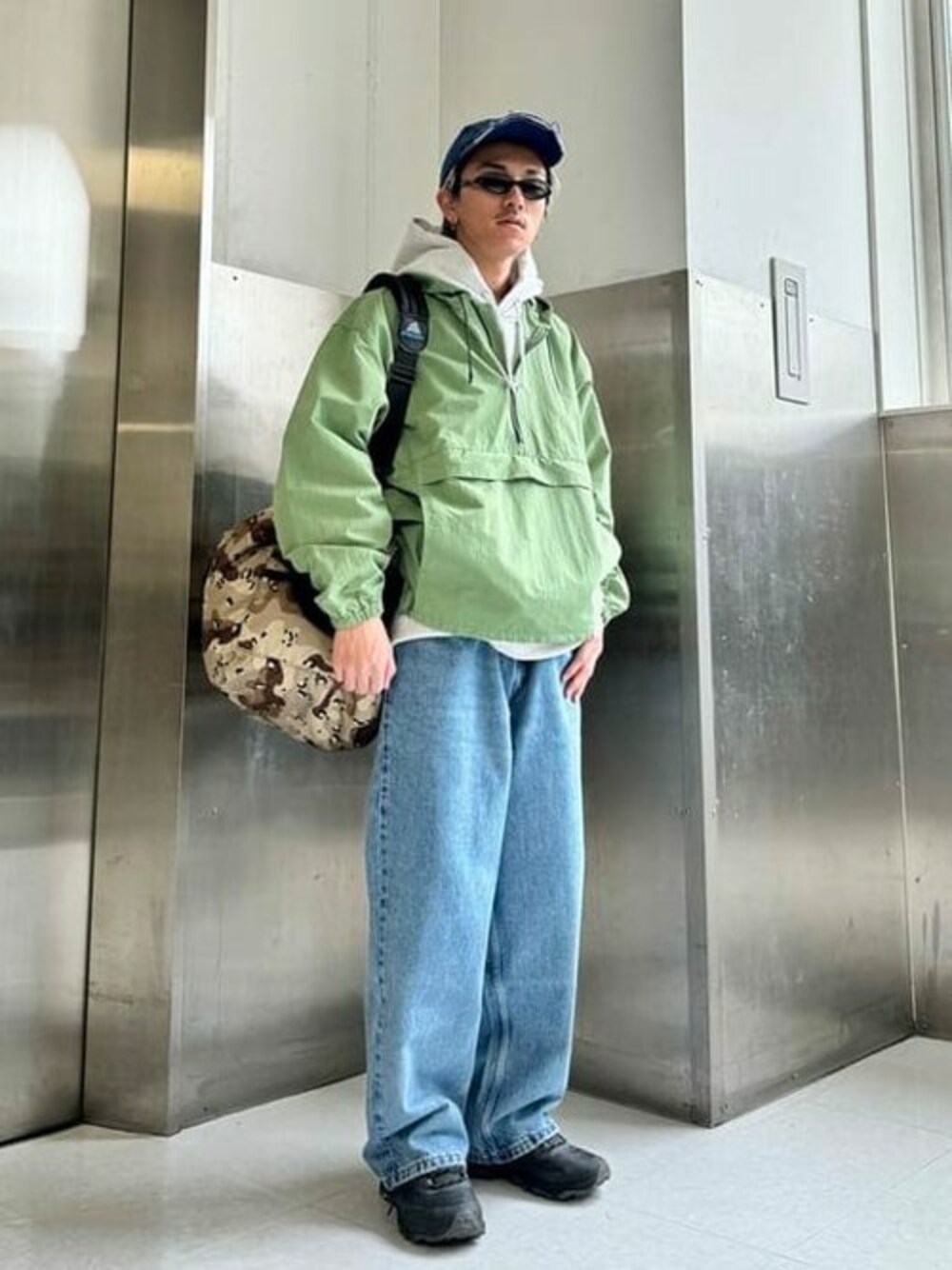 【NICEなグリーン】 〈BEAMS〉のナイロンアノラックパーカーをメインにストリートな雰囲気に。 こんな良いカラーなかなか無いです。 インナーもパーカーで合わせてみました。 首元のボリューム感も◎ 〈LEVI'S(R)〉のバギーデニムもあえて大きいサイズで履いてゆったり着用してます。 BEAMS / Ryohei Takata