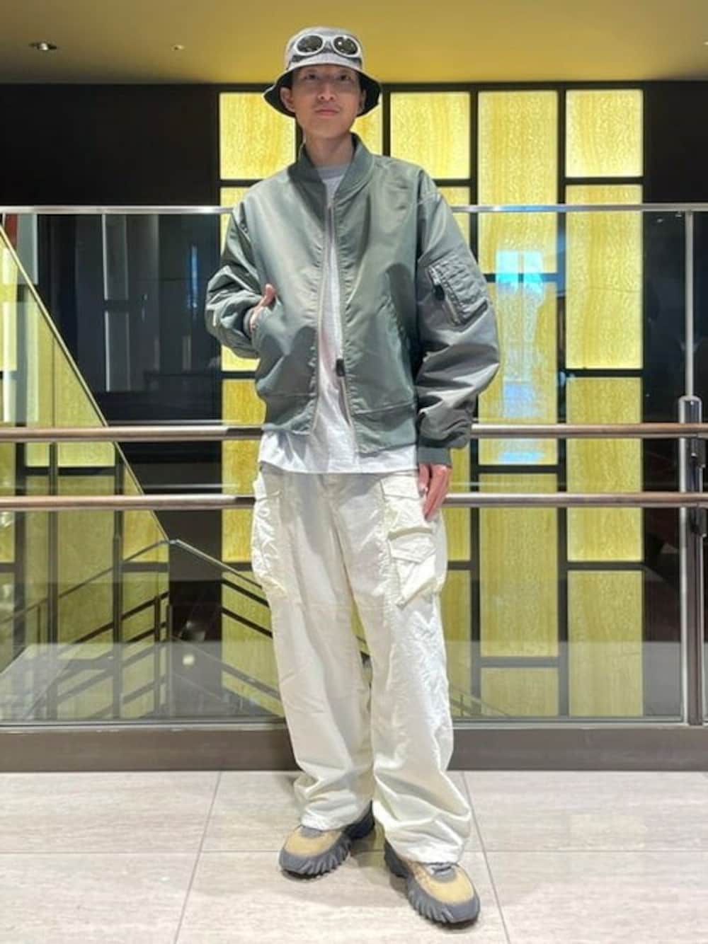 【さりげない遊び心】〈BEAMS / ルーズフィット クレイジー MA-1〉をメインにスタイリング。パッと見だと気づかないですが、実は左右で色が変わってるんです!このさりげなさが他にはないビームスオリジナル。こちらの商品は着丈を調整し、短すぎない作りなのでクセがなくスタイリングしやすいと思います。そして中綿が入っていないので、軽い着心地とゆとりのある身幅が特徴です!中にスウェットを着ても◎今回はビームス別注のchampionのロンTを着用。リブのカラーを替えており、スタイリングのアクセントとして活躍すること間違いなし!パンツもホワイトを着用し、爽やかな色合いのスタイリングにしました!春におすすめです。 ビームス 新丸の内 / Yuto Fukano