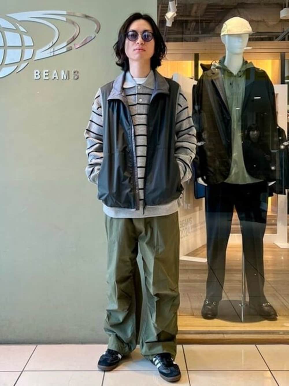 個人的に気になってるアイテム、<BEAMS>オリジナルのダブルポケットベストを中心にスタイリングしてみました。薄手の生地感なので、厚手のフーディの上からは勿論、夏場はTシャツの上からでも着ていただけます。ジップと襟の部分は色味が変わってるのもポイントですね。ダブルポケットなので機能面も高め。サイズM着用です。少しゆったりめですが、着丈は丁度良い長さなのも個人的に好みです!これからの季節是非! BEAMS 町田 / 関澤 佑樹