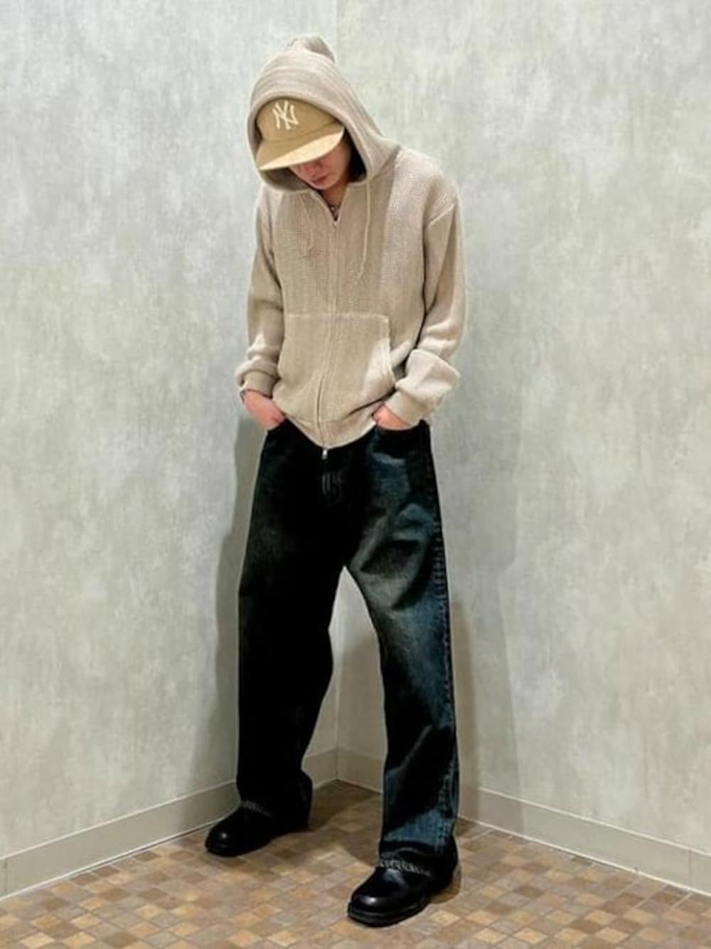 今のトレンドにバッチリのコーディネートです。ワイドパンツにジップフーディー。しかもこちらのフーディーは、メッシュ素材なんです。これからの季節に活躍間違い無しですね。 ワイドパンツと合わせることでAラインシルエットになり、スタイルも良く見えます! トップスの淡い色に合わせて、キャップもベージュにしました。〈NEW ERA〉 × 〈BEAMS〉の別注アイテムです!スエード素材でストリートすぎずカジュアルに合わせられるアイテムです! ビームス 池袋 / こたろう