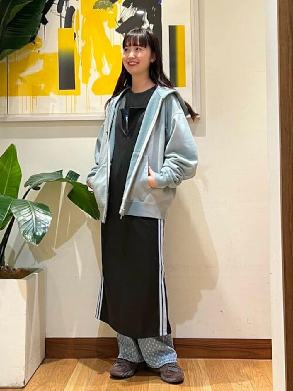 ジャージ素材のワンピースはストレートシルエットになっていて、合わせ方によっては様々な着方ができそうです(^^) 私はデニムとパーカーでカジュアルに着てみました〜デニムは再入荷です!お見逃しなく◎! ビームス 二子玉川 / 小林 茉由
