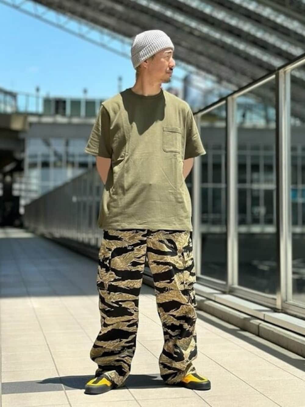 ミリタリーな合わせです。Tシャツはポケットが沢山!パンツのタイガーカモは夏のシンプルになりがちなスタイリングにもってこい!おすすめです! BEAMS 梅田 / 秀作