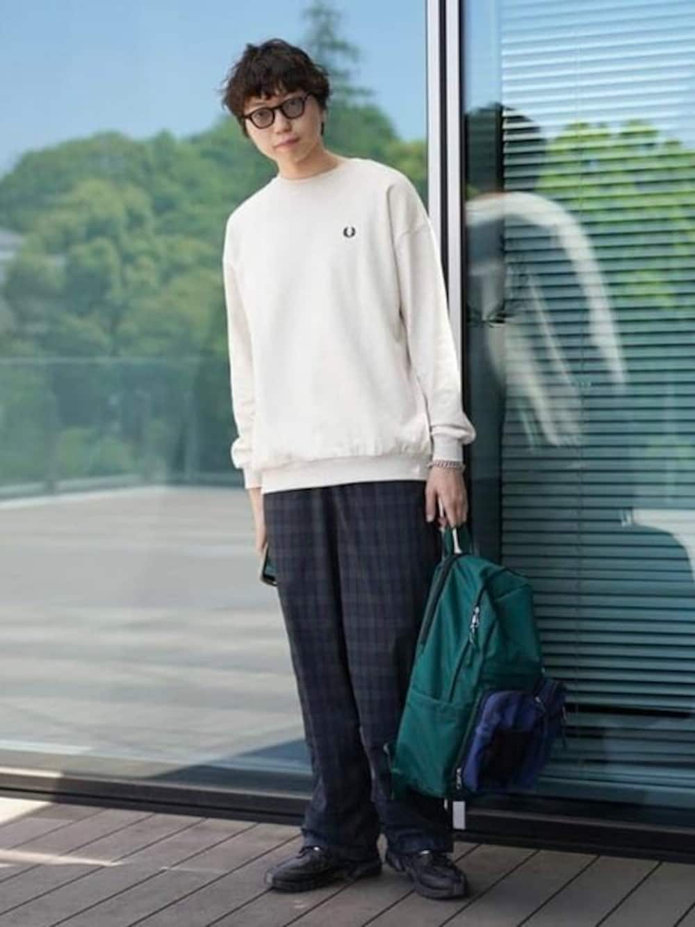 【予約必須!】〈FRED PERRY × BEAMS〉 別注エンブロイダリークルーネックスウェットが予約解禁!ブラックウォッチのパンツと合わせてラフでありながら英国を感じるようなスタイリングに。 BEAMS 新宿 / SUDO