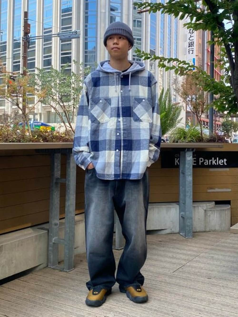 「Check! チェックシャツ」秋に着たい一着、ネルシャツ。ゆるっとしたシャツにはワイドデニムを合わせる。フード付きのネルシャツ、どこか懐かしい雰囲気ありますよね...【+♡で保存していただくと見返しやすくなります!】 ビームス 神戸 / 新田 悠晴