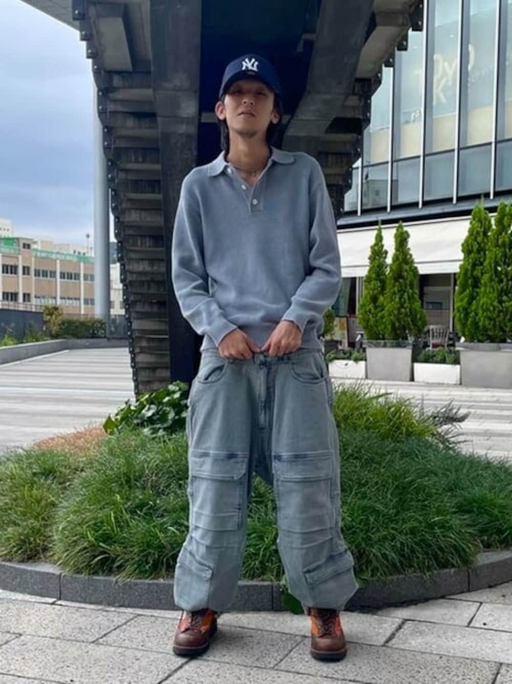 綺麗めにも着られるニットポロですが、とことんカジュアルに振るのもオススメです。ワントーンで合わせるだけで洒落た雰囲気が出ます。 ビームス 東京スカイツリータウン / 永田 素生