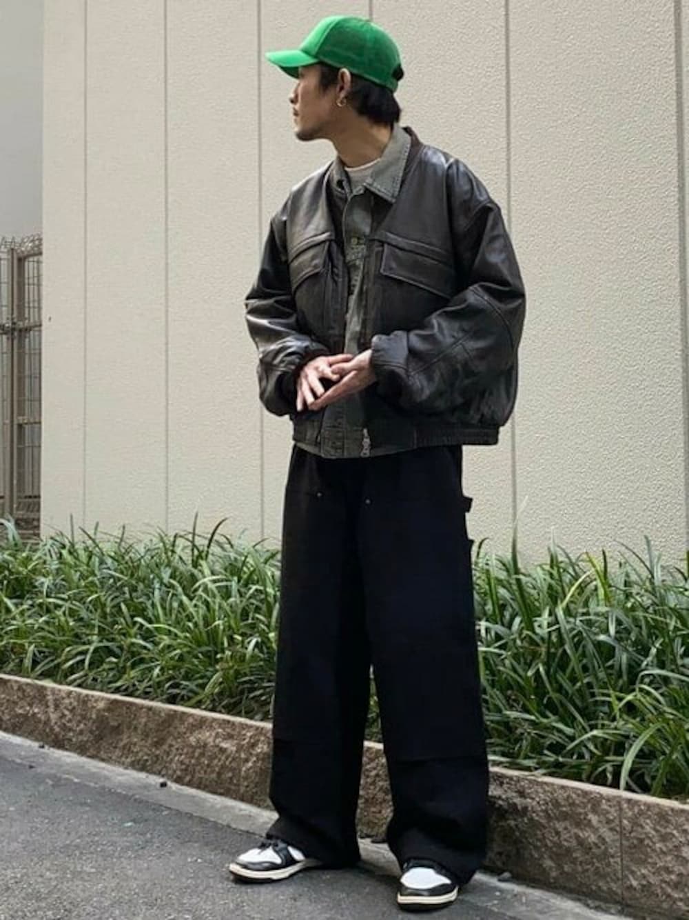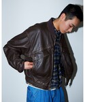 BEAMSオリジナルのレザーブルゾンにLeeのライダースジャケットをレイヤード、どちらもユーズド加工が施されており、トレンド感のあるスタイリングにしました。 BEAMS 神戸 / 谷口 佑介