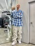 【白パンツ×青チェック】 どこかで見たことあるようなスタイリングを意識してます。オーバーサイズのサイズ感でストリートこなし好みにはぴったりすぎるアイテムでおすすめです。