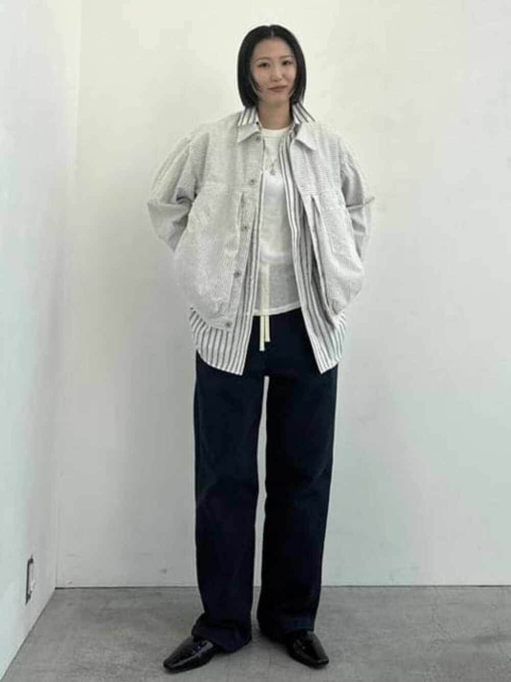 春先にもってこいのシアサッカー バルーン Gジャケットジャケット。凹凸のある生地感!カラー、ストライプ、爽やかです。身長164cmでMサイズを着用。オーバー目に着てます。 次に【別注】LACOSTE / ストライプ ロングスリーブシャツ。こちらは1番小さい39サイズを着用しておりますが、大きめです。 何にでも合わせやすいカラーのストライプが重宝できそう! ストライプ×ストライプの合わせオススメです!