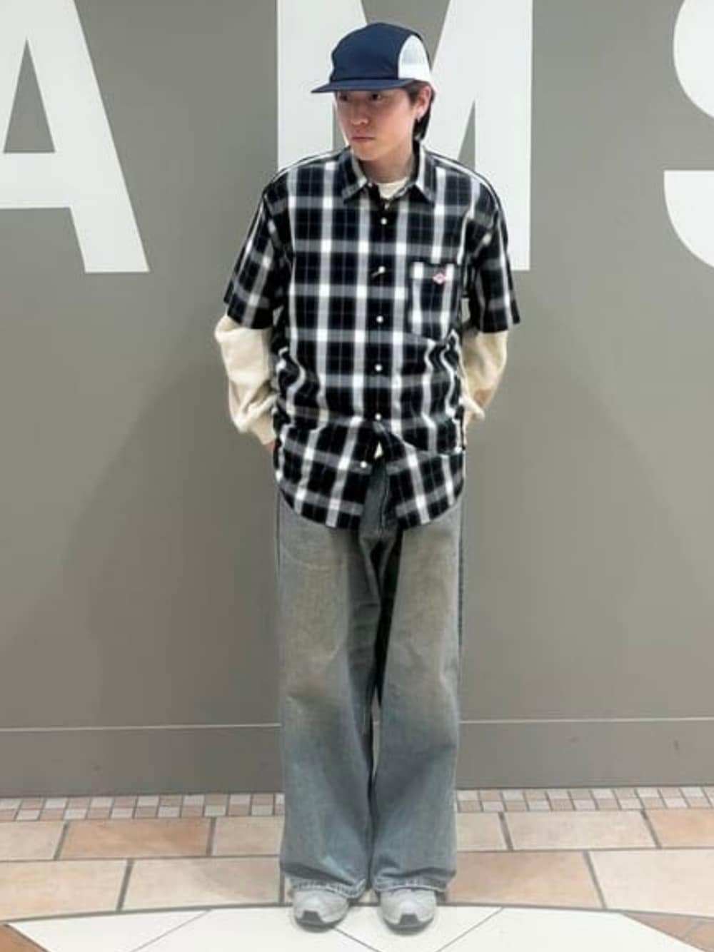 メッシュキャップとチェックシャツでワーク感を出してます。 サイズはシャツが40を着用しています。