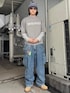 半袖スウェットは絶妙なナード具合が◎褪せたカラーや立体感のあるワッペンで雰囲気も出ています!デニムカーゴはサイズ感かなり大きめですが裾に絞りがついているので引きずる心配無し!裾に溜める履き方ができるのでお勧めです。